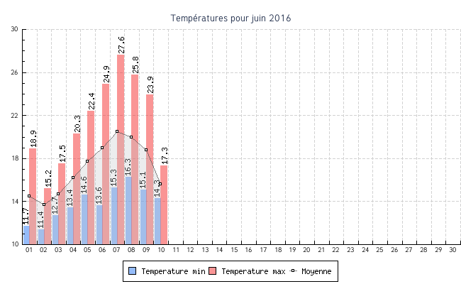 | 10 | 14.3 °C | 17.3 °C | 15.6 °C | 0.0 km/h (0.0 km/h) | N |